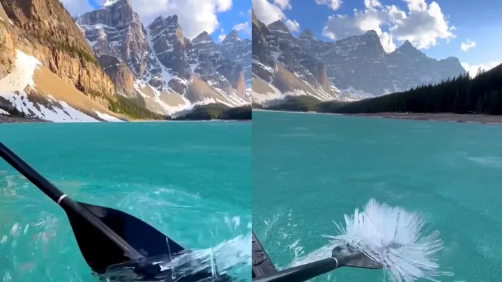 На видео сняли замерзшее озеро в горах, которое застыло во время волн
