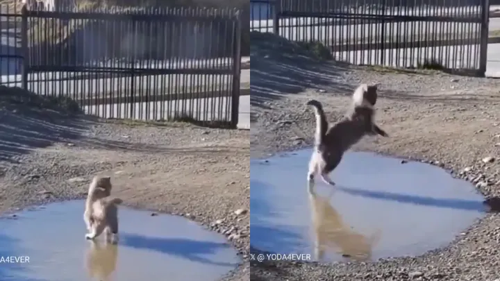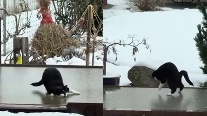 Котик на льду показал, что пушистики тоже любят резвиться на катке