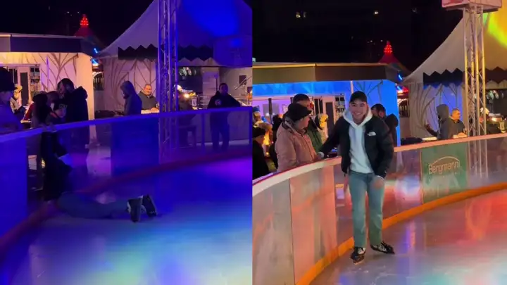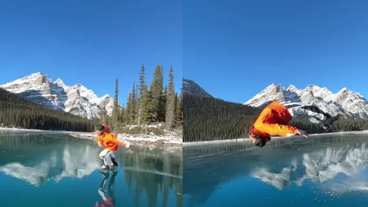 Лежачий тулуп: парень, учащийся кататься на коньках, изобрел новый трюк на льду