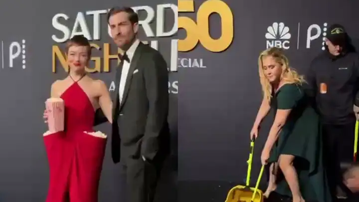 Louis Vuitton сшил для Эммы Стоун специальное платье с карманами для попкорна Платье было создано к юбилею скетч-шоу Saturday Night Live Show.