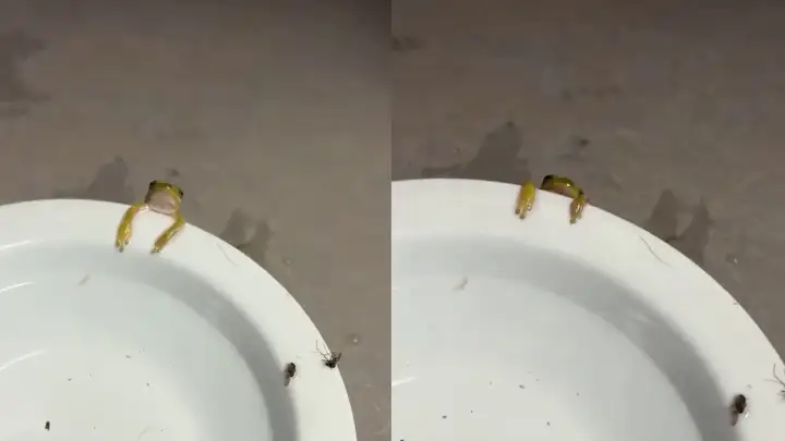 «Заканчивайте!»: лягушонок жестом потребовал, чтобы его перестали щекотать