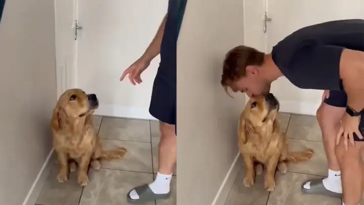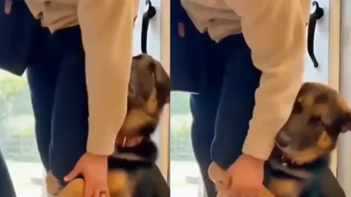 Слишком мило: песик каждое утро не хочет отпускать хозяина на работу