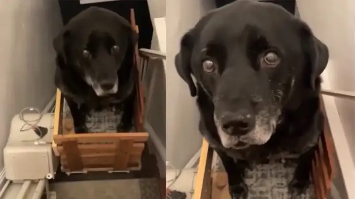 Милота дня: хозяева сделали лестничный подъемник для своей пожилой собаки