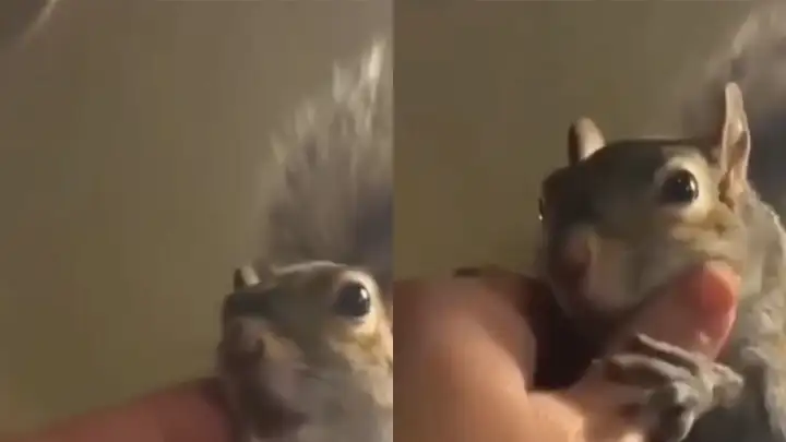 Белка, которую впервые погладил человек, теперь не хочет отпускать его руку