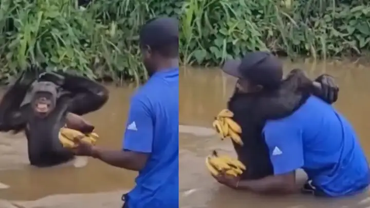 Реакция шимпанзе на появление двуногого друга любого растрогает до слез