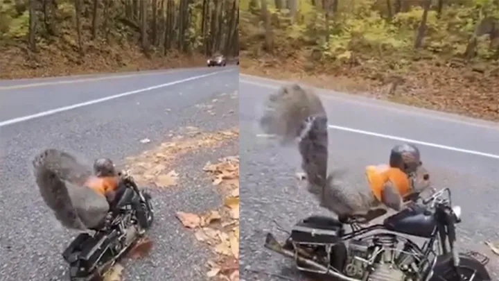 Неожиданно: байкер сделал «ход конем» и сыграл с бегущим за ним псом в догонялки