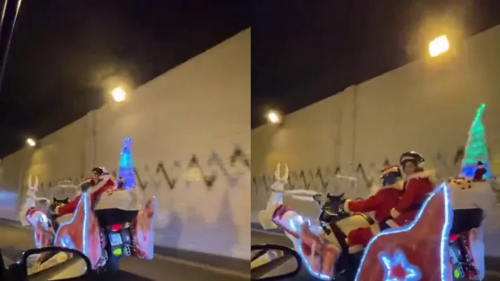 Байкер украсил свой мотоцикл и превратился в Санту в оленьей упряжке