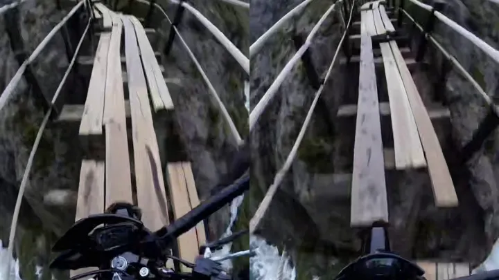 Парень проехался на мотоцикле над пропастью и шокировал Сеть своим бесстрашием