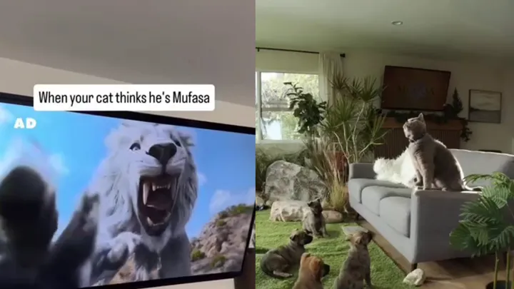 Хозяин воссоздал для своего кота сцену из мультфильма «Муфаса: Король Лев»