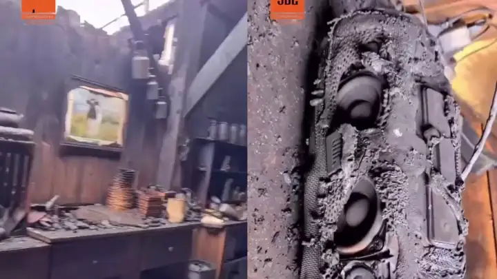 Сеть поразило видео, где колонка JBL играет после тотального пожара в доме