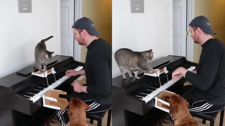 Пианист научил своих питомцев играть на пианино и сыграл с ними дуэтом