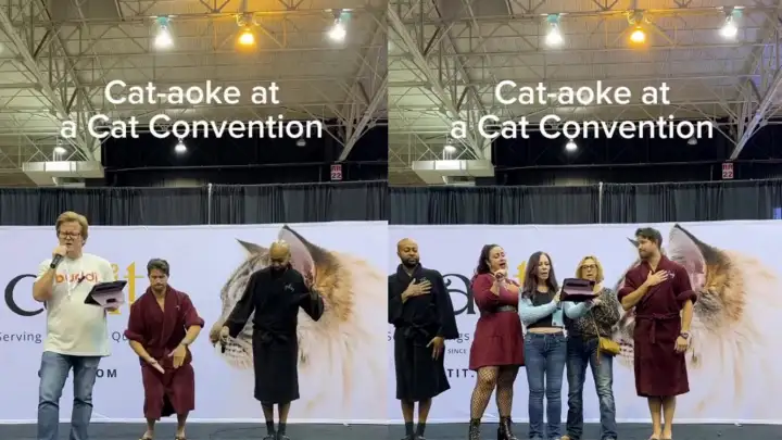 Котооке: кот спел в микрофон и показал всему интернету свои вокальные таланты Какая харизма, какая экспрессия!В США прошел чемпионат по «Кото-оке», где участники мяукают известные песни Караоке, но на кошачьем.На видео сняли котика по кличке Джек с самым гигачадовым «Мау» на свете Как будто наложенная озвучка.Котейка сломался после того, как попытался передразнить хозяйку Еще и зевота напала.Мужской хор исполняет кошачье «мяу-мяу» и собирает море лайков в соцсетях Мужской хор из Техаса отличается необычным исполнением.