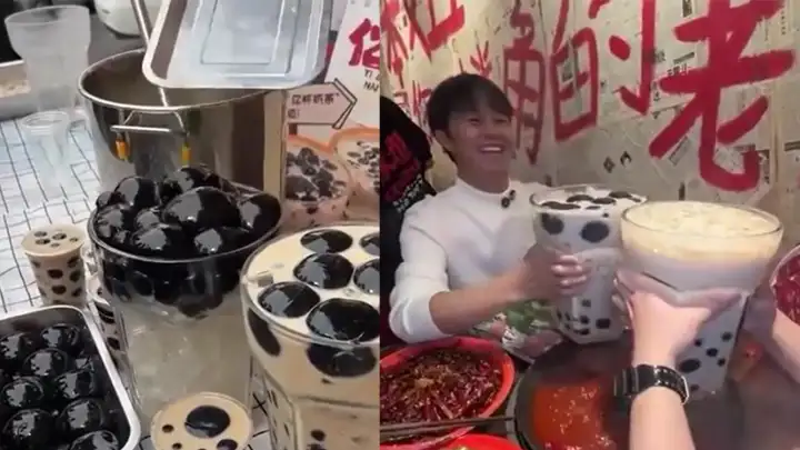 Гигантомания: в Китае готовят мегапорции чая с гигантской тапиокой