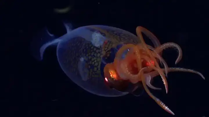 После ста лет поисков биологи впервые засняли гигантского кальмара