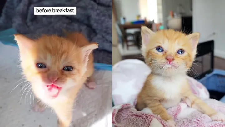 «Я покушол»: на видео сняли крохотуличного пушистого пирожочка до и после обеда Все мы немножечко такой котенок.