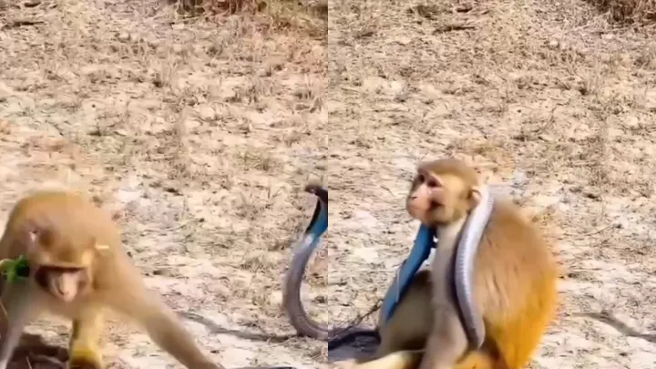 «Теперь ты мой шарф»: обезьяна надела на шею змею и была невозмутима