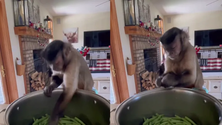 На видео сняли обезьянку, которая самостоятельно закупается на рынке