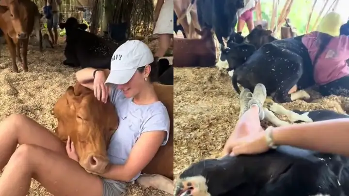«It’s a moo-vment»: в Сети набирает популярность терапия обнимашками с коровами Котики больше не в тренде.Кошачьи нежности: на видео попал котик, который жить не может без обнимашек Кошачьи нежности всегда вызывают положительные эмоции.Когда хочется обнимашек: на видео сняли универсальное решение для одиночек Стал по-настоящему ближе к природе.Капибара получила долгожданные обнимашки и была очень довольна собой Огромный, но безумно милый грызун.