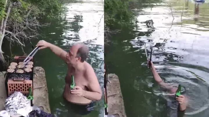 Идем ко дну: парень показал отдых с двумя золотистыми ретриверами