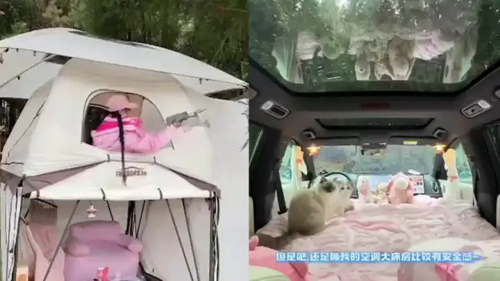 Розовый кемпинг: девушка показала свой комфортабельный отдых на природе с котами Можно артикулы на... всё?Девушка отправилась в поход с палаткой, а ночью к ней пробрались бродячие коты Неожиданная встреча.