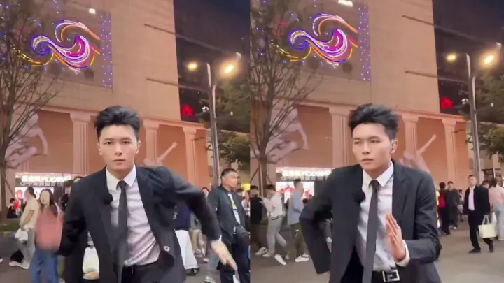 Парень пробежался на месте со спецэффектами и напомнил компьютерного персонажа Непонятно, замедляется видео или он.