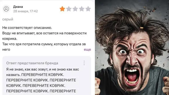 «ПЕРЕВЕРНИТЕ КОВРИК!»: продавец WB психанул из-за невежества покупателей Судя по всему, он вобрал в себя больше негатива, чем его изделие — воды.