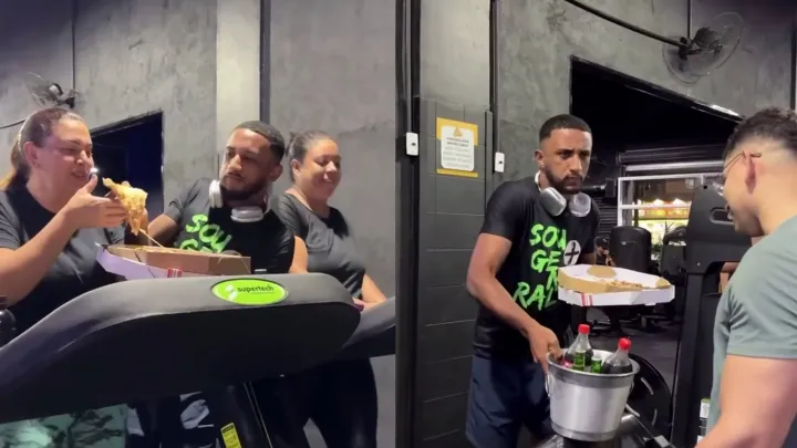 АнтиЗОЖ: парень раздал пиццу и пиво тренирующимся в спортзале
