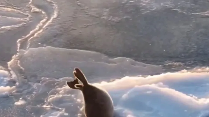 На видео сняли тюленя, который чуть не застрял в лунке после новогодних