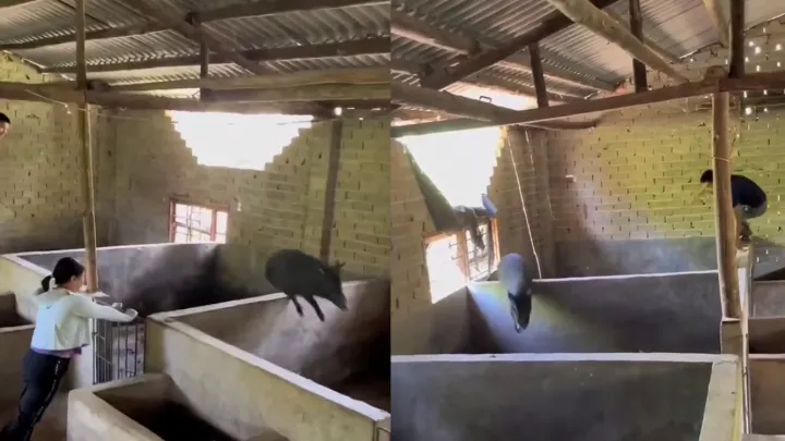 Кенгуру-свинка филигранно сбежала из загона благодаря умелым прыжкам