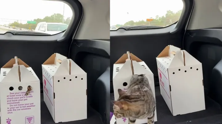 «Свобода!»: на видео попал дерзкий побег кота из картонной переноски