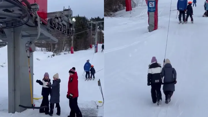 Девочки не поняли, как пользоваться подъемником, и заставили соцсети хохотать