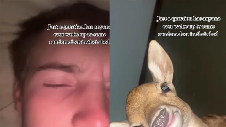 Похмельный сюрприз: олень захватил спальню тусовщика, и это очень смешно Прошлый вечер явно был очень интересным.