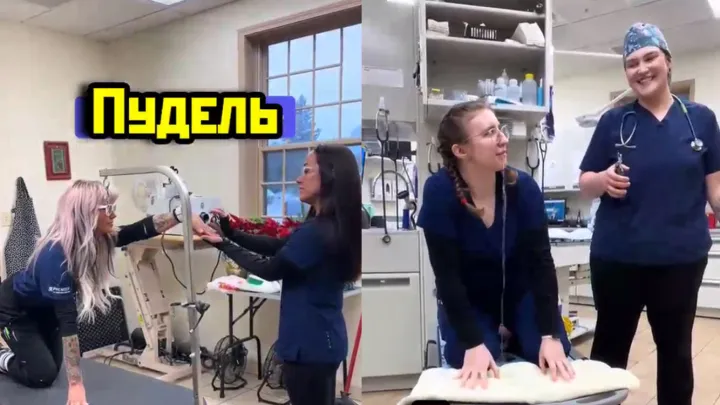 Девушки изобразили, как ведут себя разные породы собак на приеме у ветеринара Сенбернары в своем стиле.