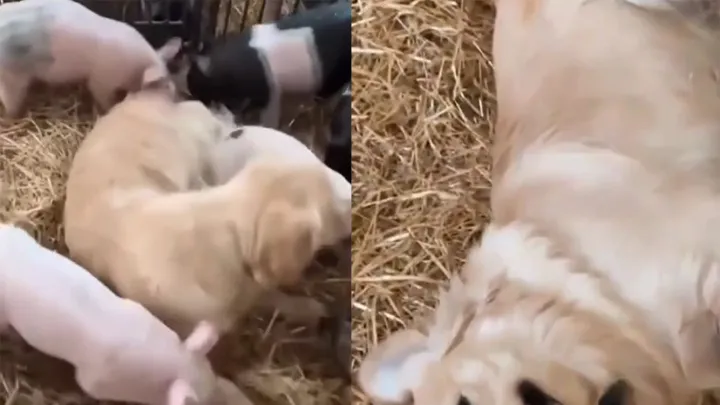 «Дружбаны!»: ретривер, обожающий общаться с поросятами, умилил соцсети