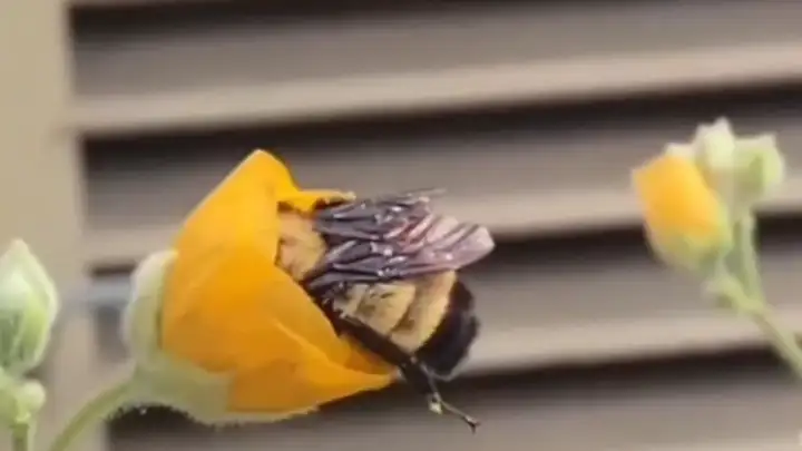 Выгорел: шмель устал от тяжелой работы и прилег вздремнуть прямо в цветке