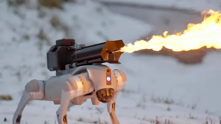 Робопса Spot научили сжигать сорняки из огнемёта Такая альтернатива намного безопаснее вредных гербицидов.Робопёс научился бегать на огромном мяче при помощи нейросети ИИ обучил машину лучше человека.Американцам предлагают купить робота-собаку с огнемётом Хитрые производители обошли закон.Новый робопёс из Швейцарии научился бегать без двигателя Конструкция робота основана на реальной анатомии собаки.