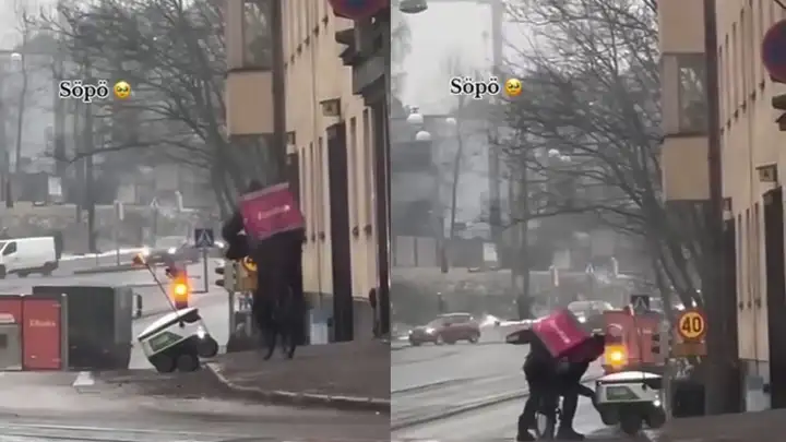 Выручил коллегу: доставщик еды помог застрявшему роботу-курьеру