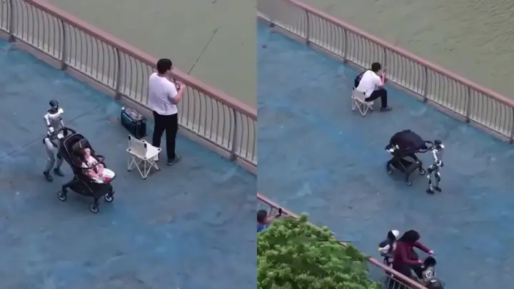 Наконец-то: робот Unitree гуляет с ребенком, пока отец рыбачит