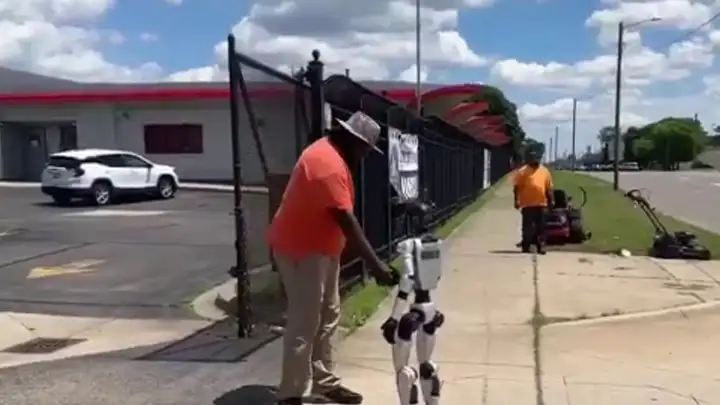 В Детройте засняли потерявшегося робота, который ищет хозяина и жмет всем руки