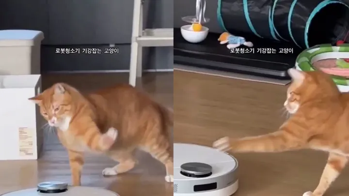 Хозяева нашли способ похудения котов после новогодних с помощью робота-пылесоса