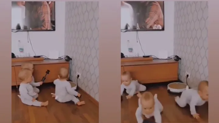 Кот забрался под детскую табуретку и превратился в робот-пылесос