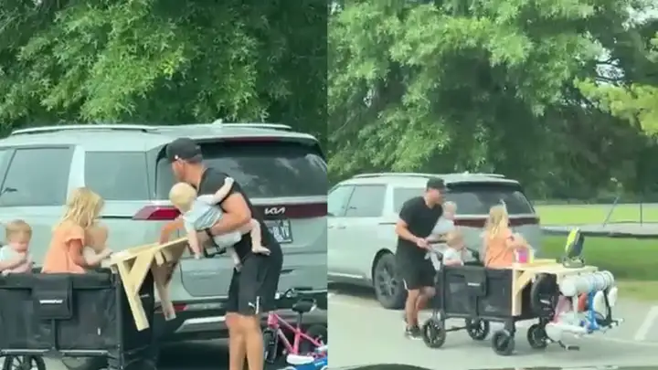 Очевидец снял на видео сборы многодетного отца на прогулку с четырьмя детьми
