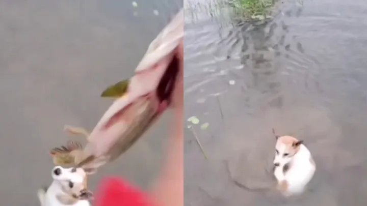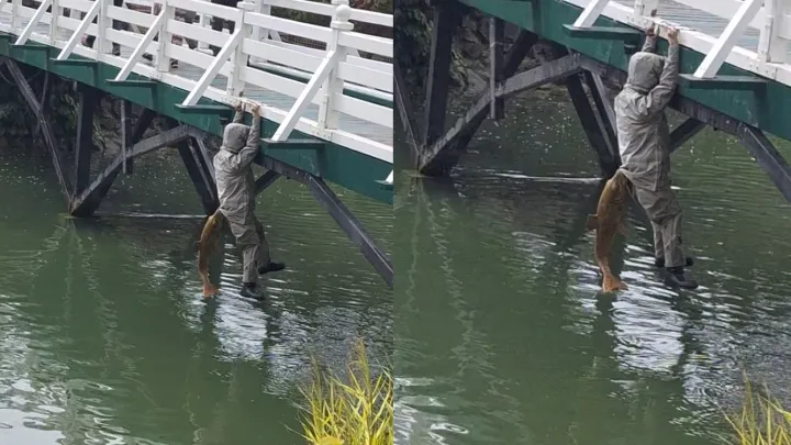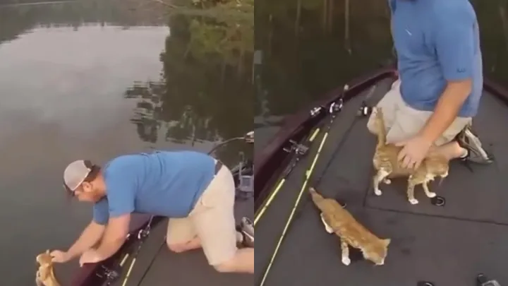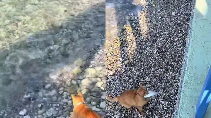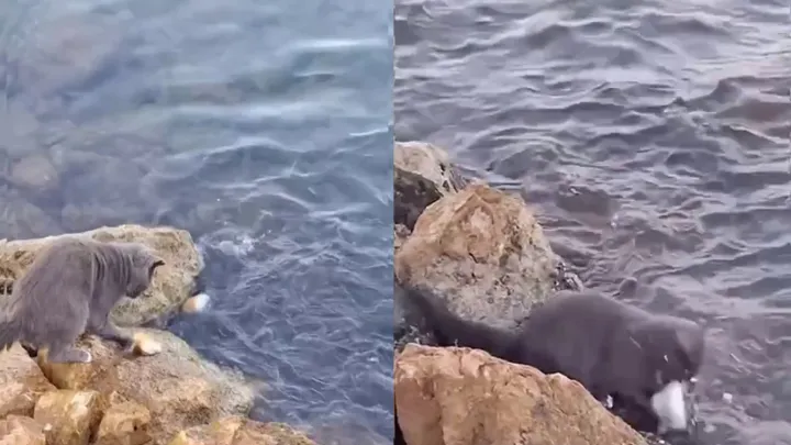 На видео сняли, как котик использует свои охотничьи навыки на рыбалке