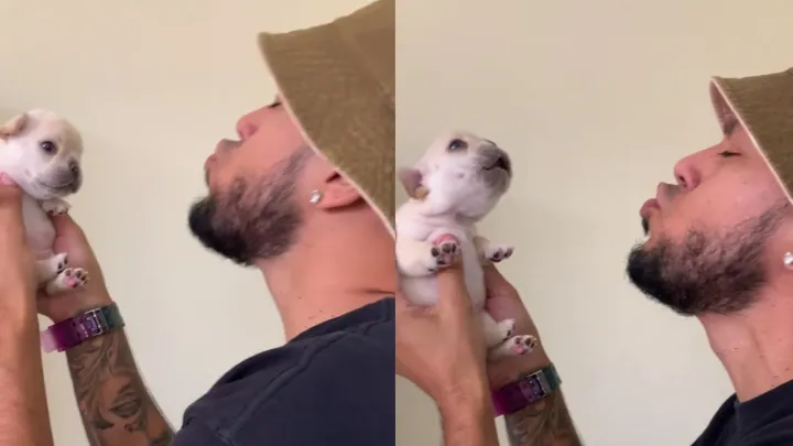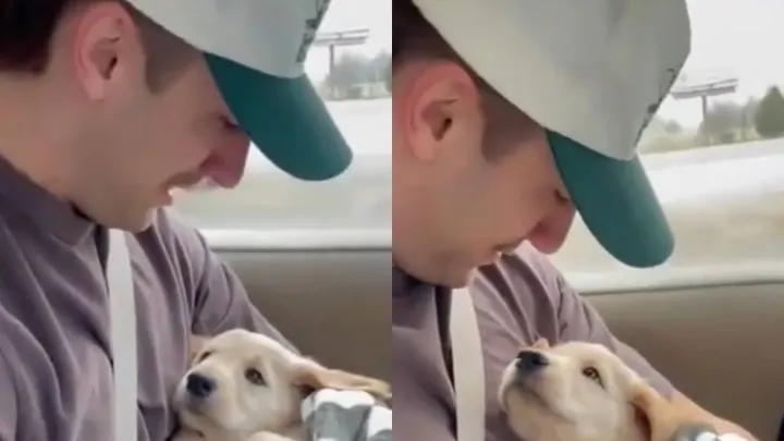 «Ты такой милый!»: первая встреча хозяина и щенка растопит сердце любого