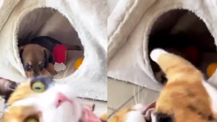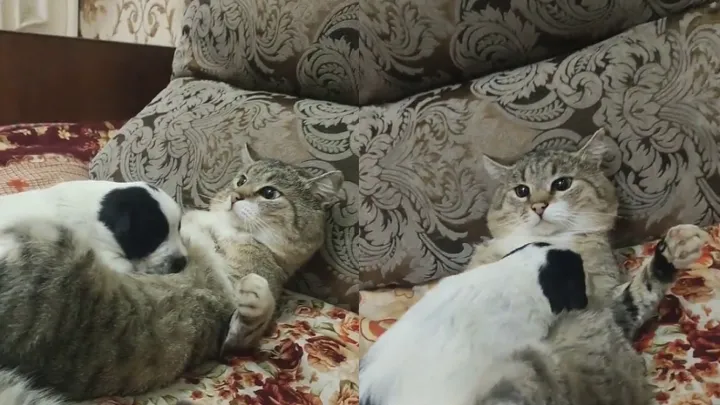 «Привет, пушок!»: милое знакомство щенка и котика очарует любого