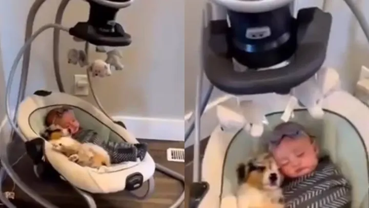 «Хорошая кроватка»: щенок, уснувший с ребенком в люльке, умилил соцсети