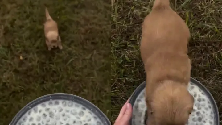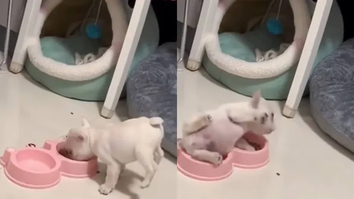 Он пытался: хозяин решил накормить щенка, но малютка этого не понял
