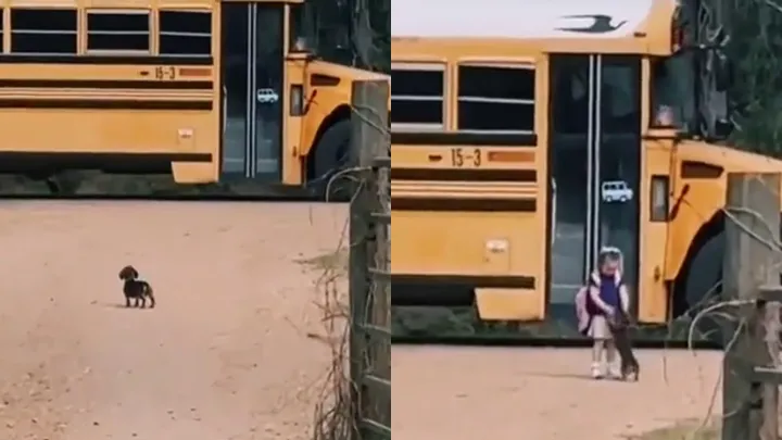 Крошечная такса встречает свою маленькую хозяйку со школы, и это слишком мило