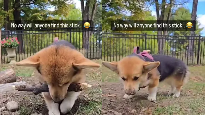 Надежно спрятал: коротколапик попытался закопать палку, но потерпел фиаско