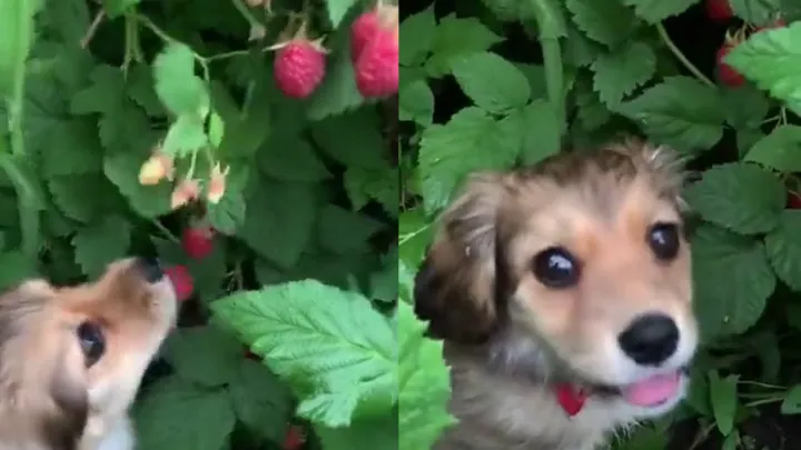 Любитель сладкого: щенок, уплетающий малину с куста, озадачил соцсети